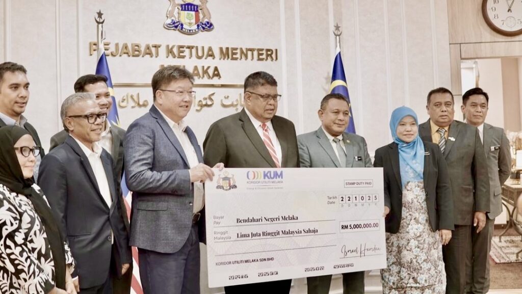 Koridor Utiliti Melaka (KUM) has presented a contribution payment to the Melaka State Government as a symbol of our commitment toward the sustainable and integrated development of the state’s utility infrastructure.